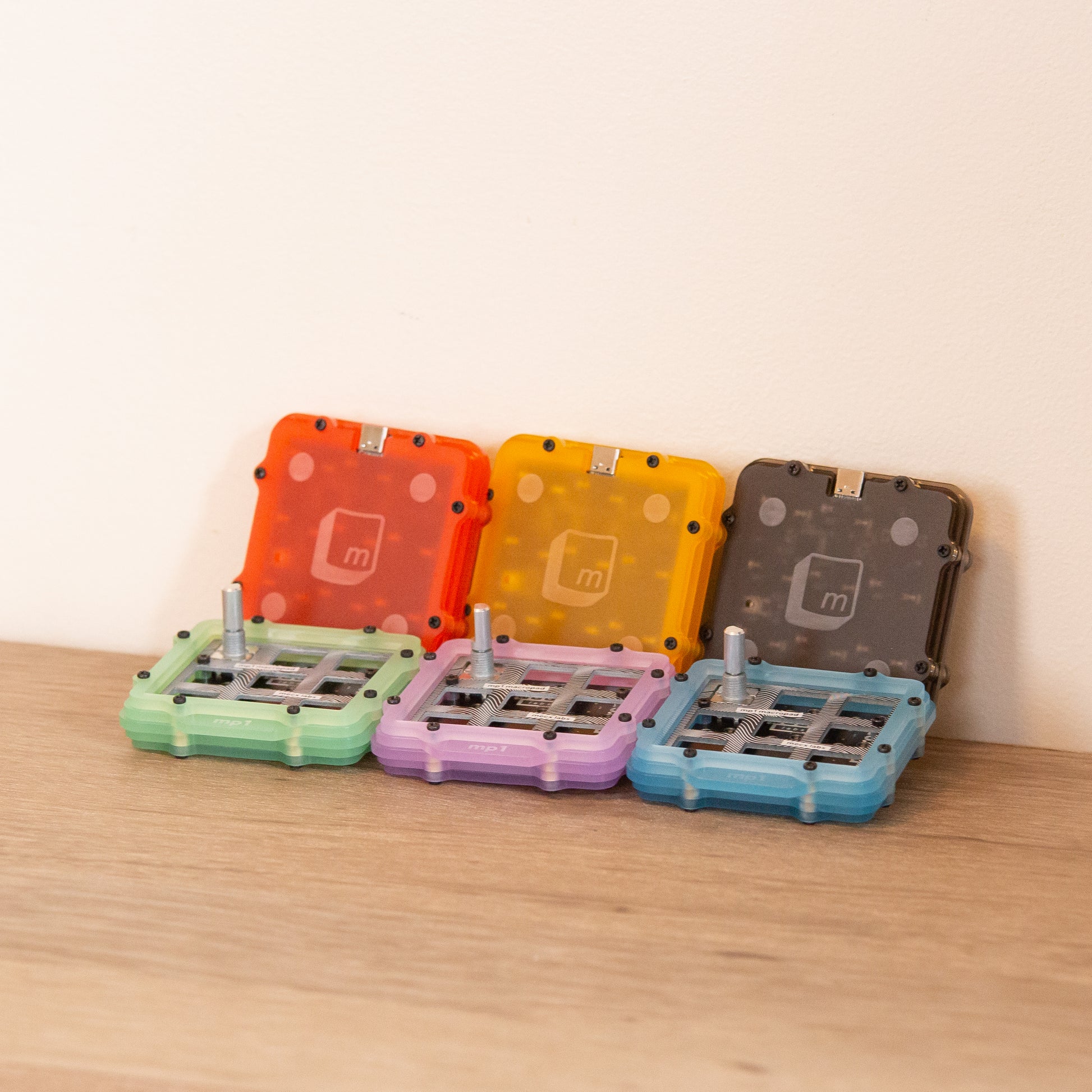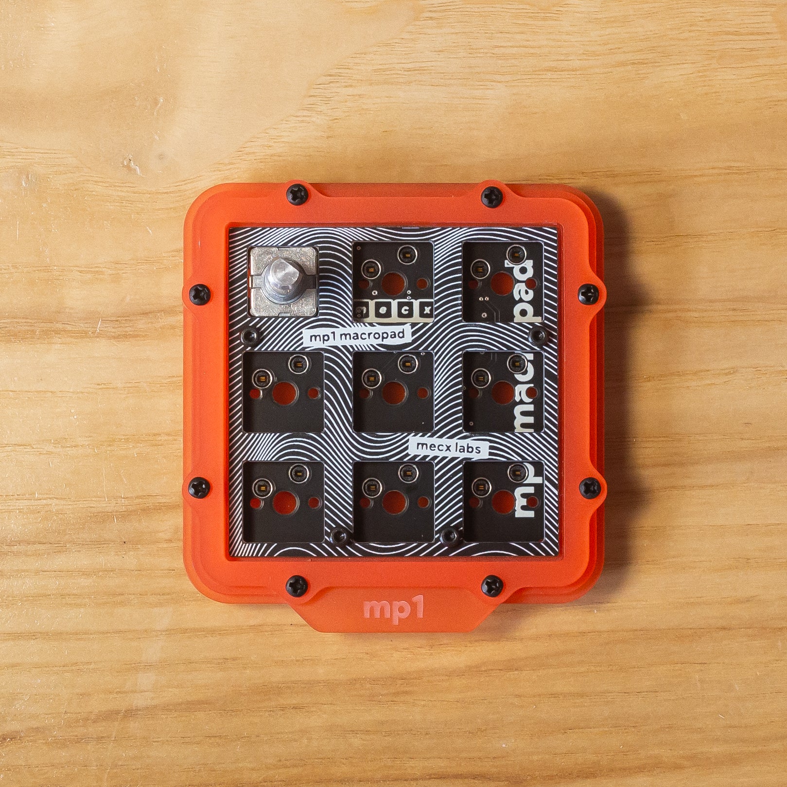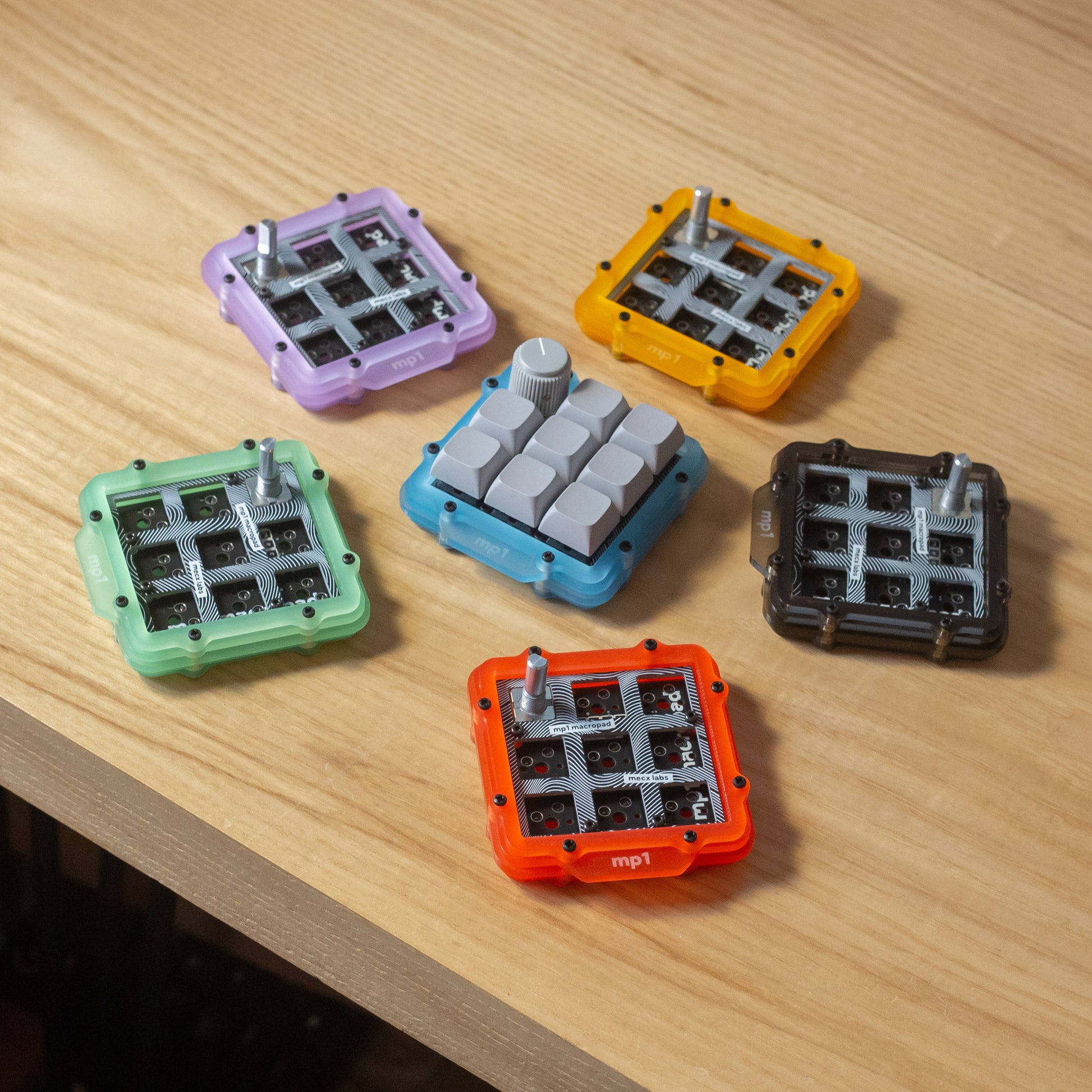The mp1 Acrylic is adds a splash of color to your desk and a whole lot of productivity. This model uses the same base PCB as all other mp1 macropads, but comes with 5 stacking acrylic plates and clear rubber feet. A colored knob of your choice is also included.